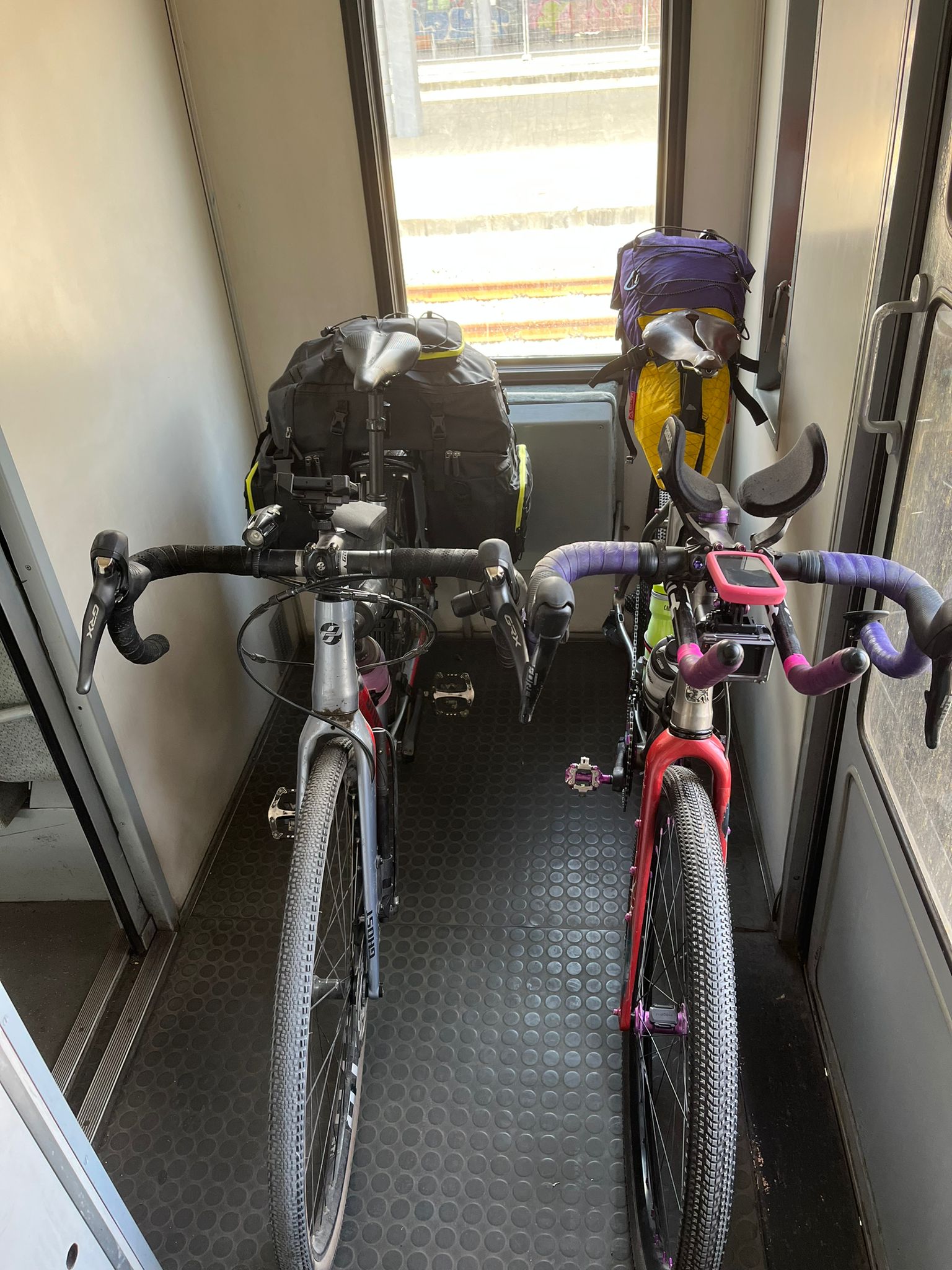Although, after all of that, we landed in one piece. Passport control was fast, and our bikes were waiting for us right as we got to the baggage control. From there, there was a direct train to where we will stay on our last day. We made sure that we could store our suitcases there, so we assembled our bikes and stored our suitcases.
