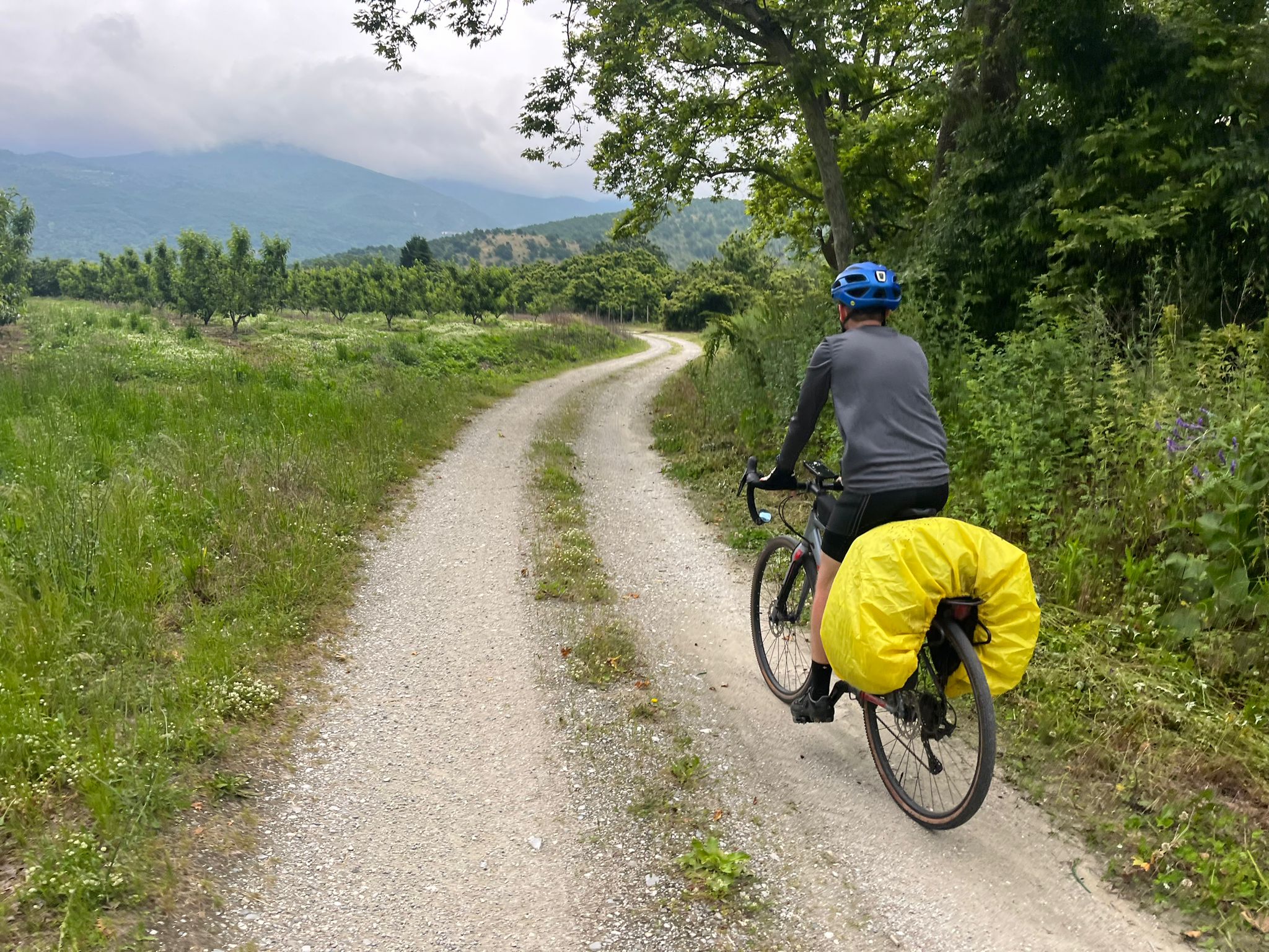 Soon after that, we experienced, yet again, more rain. But this time we were on a dirt road, the rain was the hardest we experienced, and we had to ford several streams. But after getting through all of that, we finally reached our hostel in Edessa.